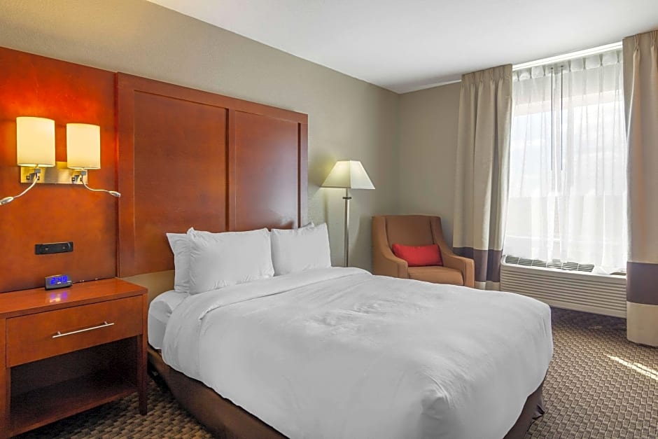 Guest amenities include free on-site parking, free Wi‑Fi, and an indoor swimming pool with a separate kids’ pool. A fitness center, business center and meeting/banquet facilities round out the workspace options, while pet-friendly policy carries extra charges. Non-smoking rooms, wheelchair accessibility, air conditioning, and an on-site elevator ensure convenient stays.